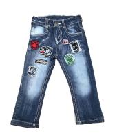 Джинсы для мальчика. Прямой крой. 4 кармана, шлёвки. Застежка на молнию и пуговку. Украшены нашивками.Рост 74 см, длина- 35 см, обхват талии- 46 см.