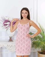 Сорочка женская из эластичного х/б трикотажа с цветочными рисунками. Приталенный силуэт. Тонкие бретели. На груди вырез-капелька. Бретели и отделка выреза и пройм из трикотажного канта.Размер S, длина- 89 см, обхват груди- 71 см.