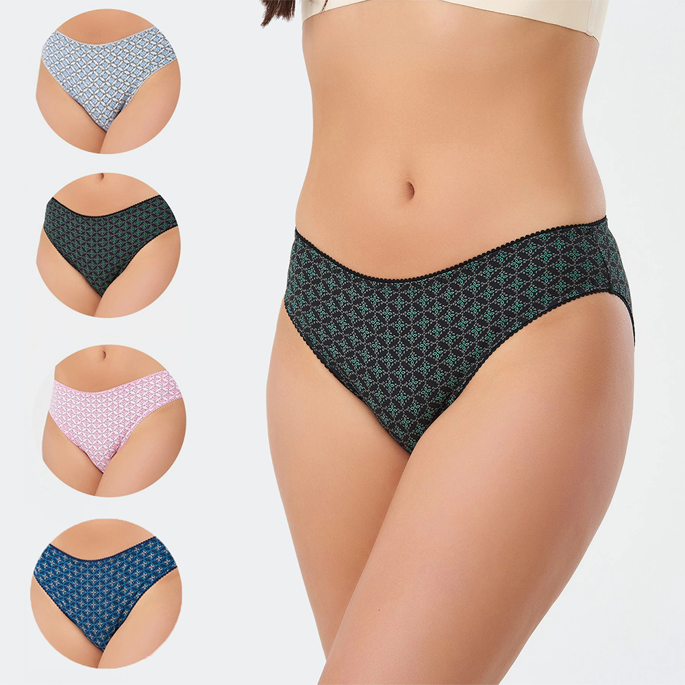 Трусы-слипы женские с принтом. Выполнены из эластичного трикотажа кулирное полотно. В поясе и проймах обработаны декоративной резинкой с фестончатым краем. Хлопковая ластовица.Расцветки ассорти, в заказ включаются по наличию (без выбора цвета).