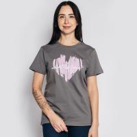 Футболка женская с втачным коротким рукавом. Модель прямого силуэта. На полочке принт-термопечать "Cердце" с надписью "Что такое любовь?". Горловина круглая, обработана бейкой из основного материала. Горловина спинки внутри укреплена настрочной планкой из кулирки. Низ изделия и рукавов обработан швом вподгибку двойной строчкой.Размер 44: длина 64 см, обхват груди 93 см.