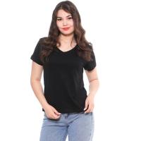 Футболка женская, изготовлена из однотонного эластичного х/б трикотажа (кулирное полотно). Прямого кроя. V-образный вырез, обработан кантом из основного полотна, в цвет изделия. Горловина спинки внутри обработана настрочной планкой из кулирки. Рукав втачной, короткий. Низ изделия и рукавов обработан швом вподгибку двойной строчкой.Размер 48: длина 62 см, обхват груди 94 см.