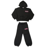 Костюм для девочки.Мастерка с капюшоном. Укороченная, широкого кроя. Рукав, низ мастерки на манжете. Карман-кенгуру. На полочке и рукавах рельефы. На груди яркие надписи.