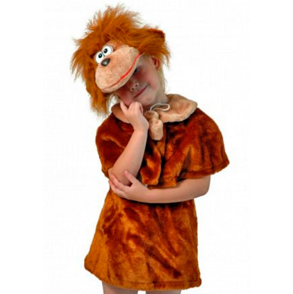Карнавальный костюм "Обезьяна" из плюша, состоящий из 3 предметов: накидка, юбка и маска-шапочка.Накидка болеро с завязками. Круглый воротник в стиле "Питер Пэн".