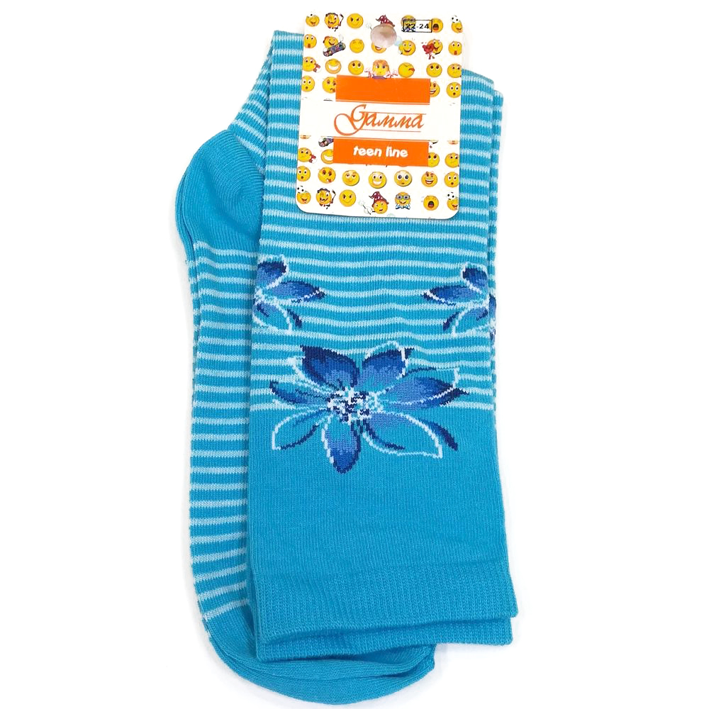 Гольфы на девочку с эластаном, с контрастными полосками. Небольшой рисунок на паголенке "цветы".