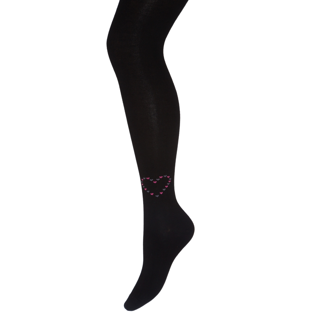 Колготки для девочки, однотонные, из эластичного трикотажа, с тканным принтом "сердечко". В поясе на эластичной резинке.