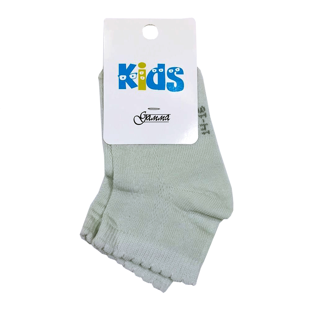 Носочки детские, укороченные, из эластичного трикотажа с ажурным рисунком. Низкий паголёнок, с эластичным, фигурным бортиком.