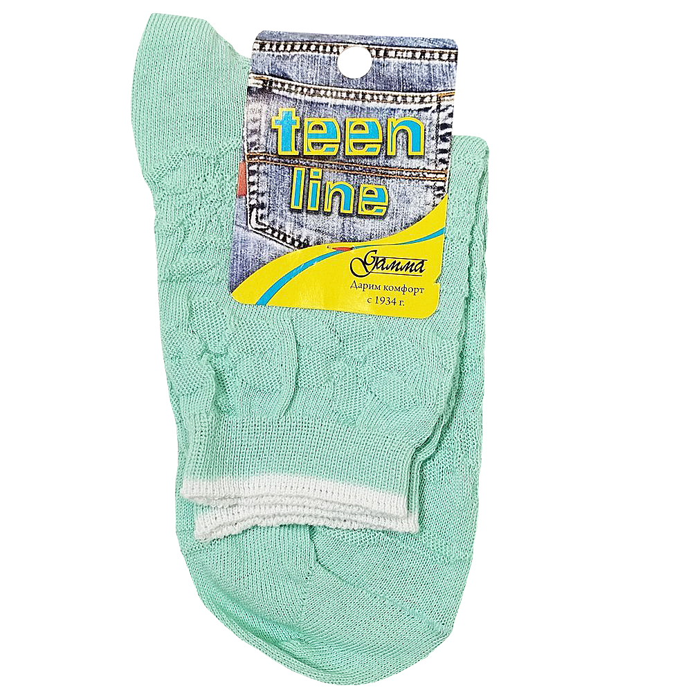 Носки для девочек выполнены из однотонного 100% хлопка. Декорированы ажурным рисунком "Цветы". Средний паголёнок с эластичным бортиком. Борт контрастного цвета. Мысок с плоским швом.
