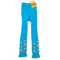 Леггинсы для девочек, утепленные на махре. Пояс на внутренней резинке. На заднем полотнище анатомическая вставка для комфортного использования. Низ леггинсов с фестончатым краем контрастного цвета.  Нижняя часть украшена тканым принтом.
