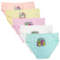 Трусики для девочек из эластичного х/б трикотажа (кулирное полотно). Украшены ярким принтом. В поясе и в проймах отделаны эластичным трикотажным кантом, в цвет изделия.ВНИМАНИЕ! Расцветка может прийти любая из представленных на фото.