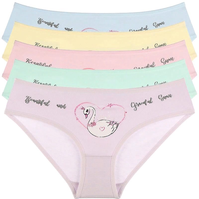 Трусики для девочки, из эластичного х/б трикотажа, с красочным принтом "Царевна лебедь". Пояс и проймы отделаны эластичным трикотажным кантом.