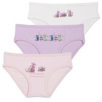 Трусы-слипы для девочки. Выполнены из эластичного х/б трикотажа кулирное полотно. Передняя половинка декорирована принтом "породистые кошечки". В поясе и проймах отделаны эластичным трикотажным кантом. Хлопковая ластовица.ВНИМАНИЕ! Товар продается в количестве 3 штук, одного размера, в трех расцветках.