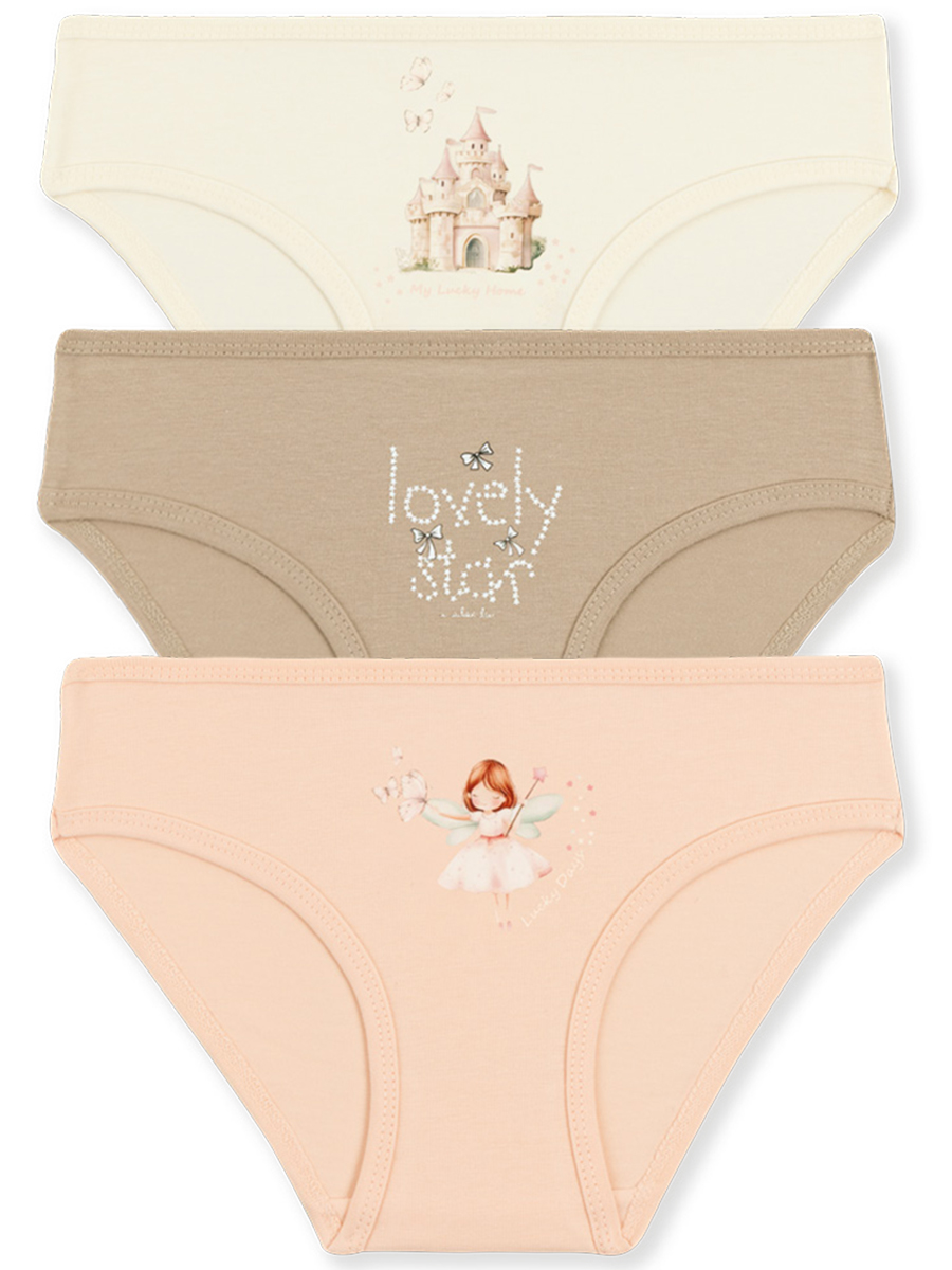 Трусы-слипы для девочки, выполненные из эластичного х/б трикотажа кулирное полотно. Декорированы нежным принтом. В поясе и проймах отделаны эластичным трикотажным кантом из основного полотна. Хлопковая двойная ластовица.Турецкая фабрика, основанная в 1984 году. Трикотаж качества пенье.