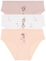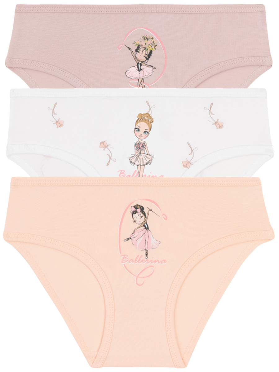 Трусы-слипы для девочки. Выполнены из эластичного х/б трикотажа кулирное полотно. Декорированы принтом "Балерина". В поясе и проймах на эластичном трикотажном канте из основного полотна. Ластовица из хлопка.