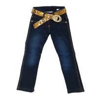Джинсы для девочки, с декоративными потертостями, утепленные, на подкладе из флиса. Прямой крой. На пояске со шлевками и регулируемым, с большой пряжкой, ремешком из иск.кожи с леопардовым принтом. Застёжка молния и пуговица на поясе. С внутренней стороны пояска вшита резинка и пуговицы, для ее регулирования. Два боковых прорезных кармана с клепками. Сзади два накладных кармана, украшенных декоративными строчками, вышивкой и клепками.Размер 98: длина- 44 см, обхват талии- 46 см.