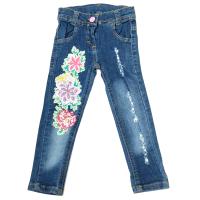 Джинсы для девочки с желтой строчкой. Модель имеет немного зауженные штанины, с декоративными потертостями и вышивкой со стразами. Застежка на молнию и на металлическую пуговицу розового цвета. На изделии выполнены два передних изогнутых кармана. На поясе 5 шлевок, чтобы ремень обеспечивал максимальную поддержку. С внутренней стороны пояска вставлена резинка и пуговицы для её регулирования. Сзади два накладных кармана. Низ изделия с подгибом.