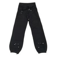 Штаны для девочки, пояс и низ на внутренней резинке. Накладные карманы спереди присобраны по верхней части резинкой и украшены декоративным шнурком. Переднее полотнище имеет две функциональные кулисы со шнурками. (присбориваются по центру)Размер 134 Штаны длина 81 см, обхват талии 60 см.
