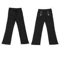 Штаны для девочки прямого кроя на манжете с резинкой в поясе. Два боковых кармана с клепками. Пояс со шлевками. На заднем полотнище есть два накладных кармана прикрытых декоративной патой на кнопке и украшенной термостразами.Размер 134: длина 76 см, обхват талии 62-64 см.