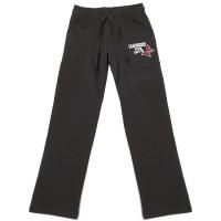 Брюки для девочки, выполнены из хлопкового трикотажа футер. Модель прямого силуэта. Декорированы надписью на английском языке "Leadership WNX 1973" и яркой аппликацией из страз "Бабочка". В поясе с эластичной удобной резинкой на талии. По поясу брюк вставлен плоский утягивающий шнурок, низ шнурка подвернут и застрочен. На изделии расположены три кармана, на передней половинке - два кармашка с отрезным бочком и один накладной кармашек - сзади. Низ брючин обработан швом вподгибку двойной строчкой.