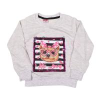 Кофточка для девочки, из х/б трикотажа, с красочным принтом "собачка"на ткани, украшенным пайетками и кнопкой-пищалкой внутри. Горловина, рукав, низ кофточки на манжетах.Размер 86: длина 33 см, обхват груди 52 см, длина рукава 32 см.