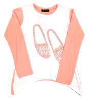 Туника полуприталенного кроя, асимметричный низ. На полочке принт украшенный стразами.Параметры модели: