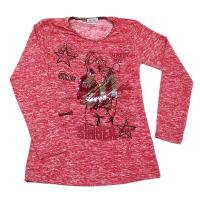 Джемпер из эластичного х/б трикотажа, с принтом-аппликацией "девушка суперзвезда" из пайеток-перевертышей. Горловина отделана трикотажной бейкой с внутренней стороны.Размер 158: длина 53 см, обхват груди 64 см, длина рукава 46 см.