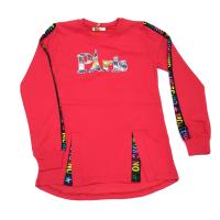 Джемпер для девочки, из эластичного трикотажа, с ярким принтом-надписью "Париж" из трикотажа и страз. Полуприлегающий силуэт. Длинный рукав. Горловина, рукав на трикотажных манжетах. На полочке шлицы. Рукава и шлицы отделанны смесовой лентой с разноцветной, неоновой надписью.Полукруглый низ спинки.Размер 128: длина- 61 см, обхват груди- 72 см, длина рукава- 51 см.