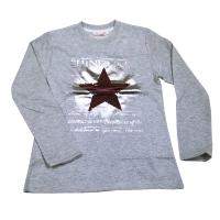 Джемпер для девочки. Горловина на манжете. Рукав прямой. На полочке красочный принт, напыление серебрянной краской и аппликация "звезда" из пайеток-перевертышей.Размер 146 Джемпер: длина 52 см, обхват груди 80 см, длина рукава 51 см
