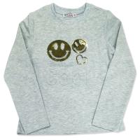 Джемпер для девочки, из эластичного х/б футера. На полочке принт с выпуклой надписью и рисунком "смайлики", украшенными блестящей фольгой. Полуприлегающий силуэт. Горловина круглая обработана воротником из рибаны. Низ изделия и рукавов обработан швом в подгибку двойной строчкой.Размер 116: длина по спинке- 44 см, обхват груди- 64 см, длина рукава- 45 см.
