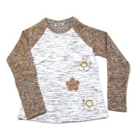 Джемпер для девочки, на полочке из эластичного, двухслойного трикотажа с рельефными рисунками, утепленного синтепоном, на спинке и рукавах из трикотажа с начесом, с лицевой стороны. Полуприлегающий силуэт. Горловина на манжете. Рукав реглан. На полочке принт "цветы" из ткани и кожи.