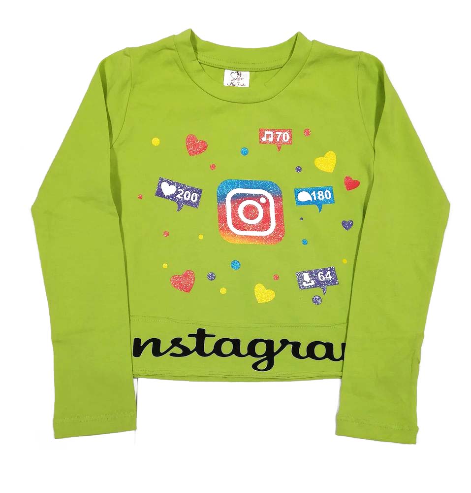 Укороченный джемпер для девочки. Прямой крой. На полочке принт "инстаграм".Размер 128: длина- 38 см, обхват груди- 72 см, длина рукава- 47 см.