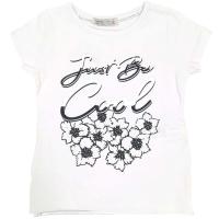 Футболка для девочки. Прямой крой. Снизу по боковым швам разрезы. На полочке принт.Рост 98 см, длина- 38 см, обхват груди- 59 см.