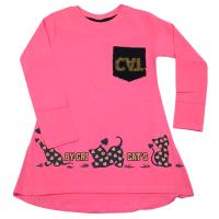 Джемпер для девочки, из эластичного х/б трикотажа с красочным принтом "кошки" декоративный карман расшит пайетками "перевертышами". Полуприлегающий силуэт. Горловина отделана трикотажной манжетой.Размер 110: длина 48 см, обхват груди 58 см, длина рукава 38 см.
