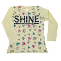 Джемпер для девочки, из эластичного х/б трикотажа с красочным принтом-надписью"SHINE"украшеная стразами. Полуприлегающий силуэт. Горловина отделана трикотажной бейкой.Размер 110: длина 42 см, обхват груди 60 см, длина рукава 36 см.