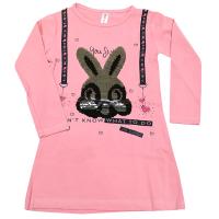 Туника для девочки. Полуприталенный силуэт. На полочке принт "зайчик" украшенный пайетками-перевертышами.Рост 92 см, длина- 45 см, обхват груди- 50 см, длина рукава- 30 см.