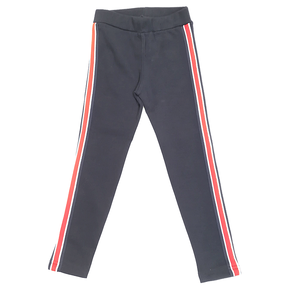 Утепленные лосины для девочки с легким начесом изнутри. На закрытой резинке в поясе. На боковых швах лампасы из репсовой ленты синего цвета с красно-белыми полосками.Размер 104 Длина 57 см, обхват талии 48 см.