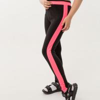 Лосины для девочки, из эластичного х/б трикотажа. В поясе на закрытой резинке. Лампасы и вставки на поясе из яркого, неоново- розового трикотажаРазмер 128: длина 71 см, обхват талии 50-56 см.