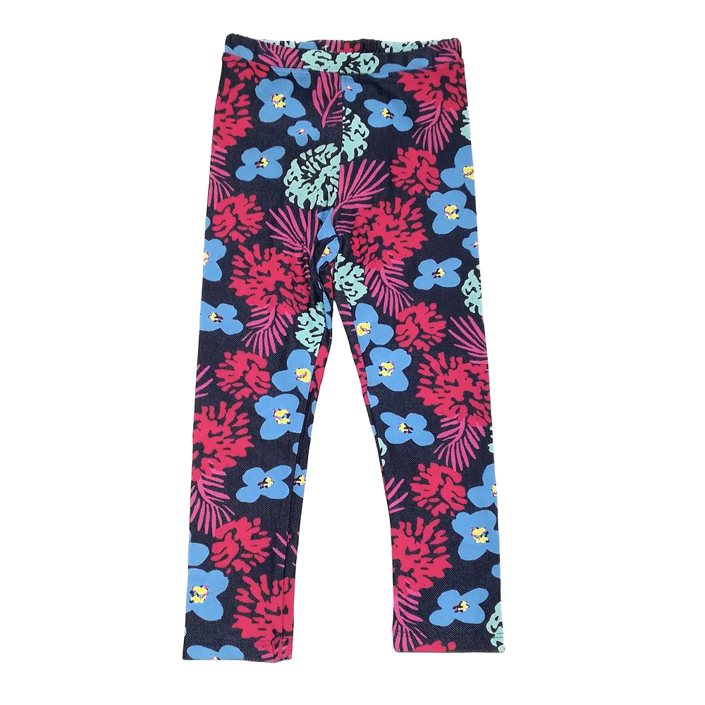 Лосины для девочки, из трикотажа с ярким, растительным рисунком. В поясе на закрытой резинке.Размер 110: длина 59 см, обхват талии 48-54 см.