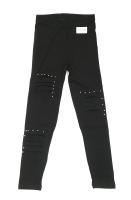 Лосины для девочки с закрытой резинкой в поясе. Украшены бусинами и декоративными надрезами со вставками ткани "сетка".Размер 116: длина 65 см, обхват талии 48-52 см.