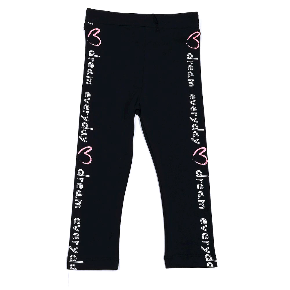 Лосины для девочки, из эластичного, х/б трикотажа. В поясе на закрытой резинке. По бокам надписи и рисунки "сердечки".Размер 86: длина 47 см, обхват талии 54-60 см.