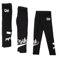 Лосины утепленные для девочки. Закрытая резинка на поясе. На штанинах надписи серебристого цвета и изображение собаки.