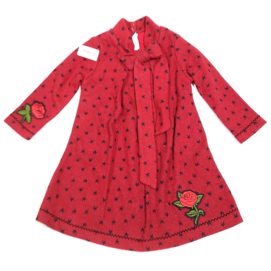 Стильное и комфортное платье для девочек. Силуэт трапеция. Воротничок "стойка", завязывается спереди на бант, На спинке вырез- капелька и застёжка на пуговку. Для удобства одевания на спинке вшита потайная молния. Платье украшено вышивкой.Размер 92: длина- 49 см, длина рукава- 28 см.