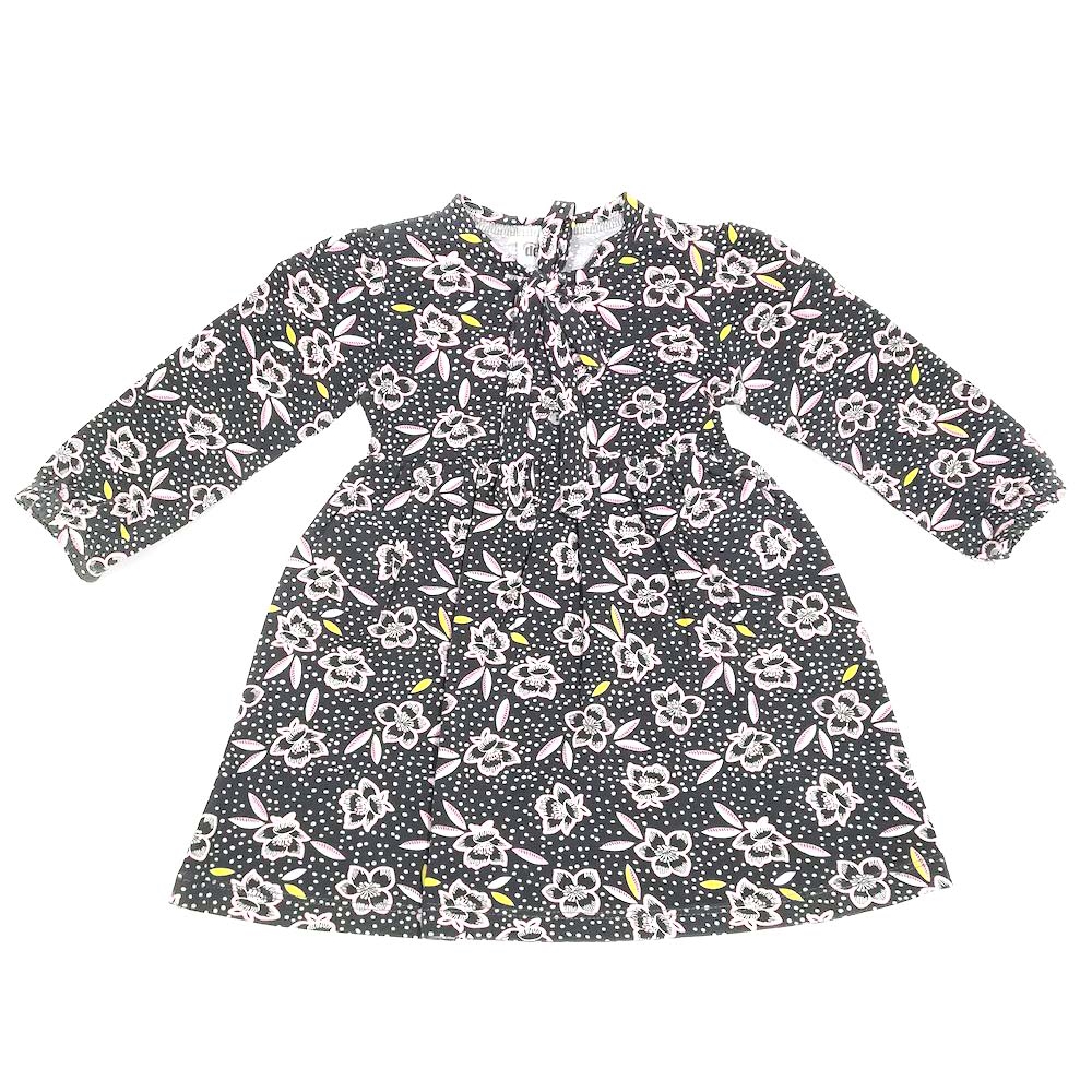 Платье для девочки. Силуэт трапеция. Пришивная юбочка на сборках. Воротник стойка с завязками спереди. На полочке застёжка пуговки.  Длинный рукав на резинке.