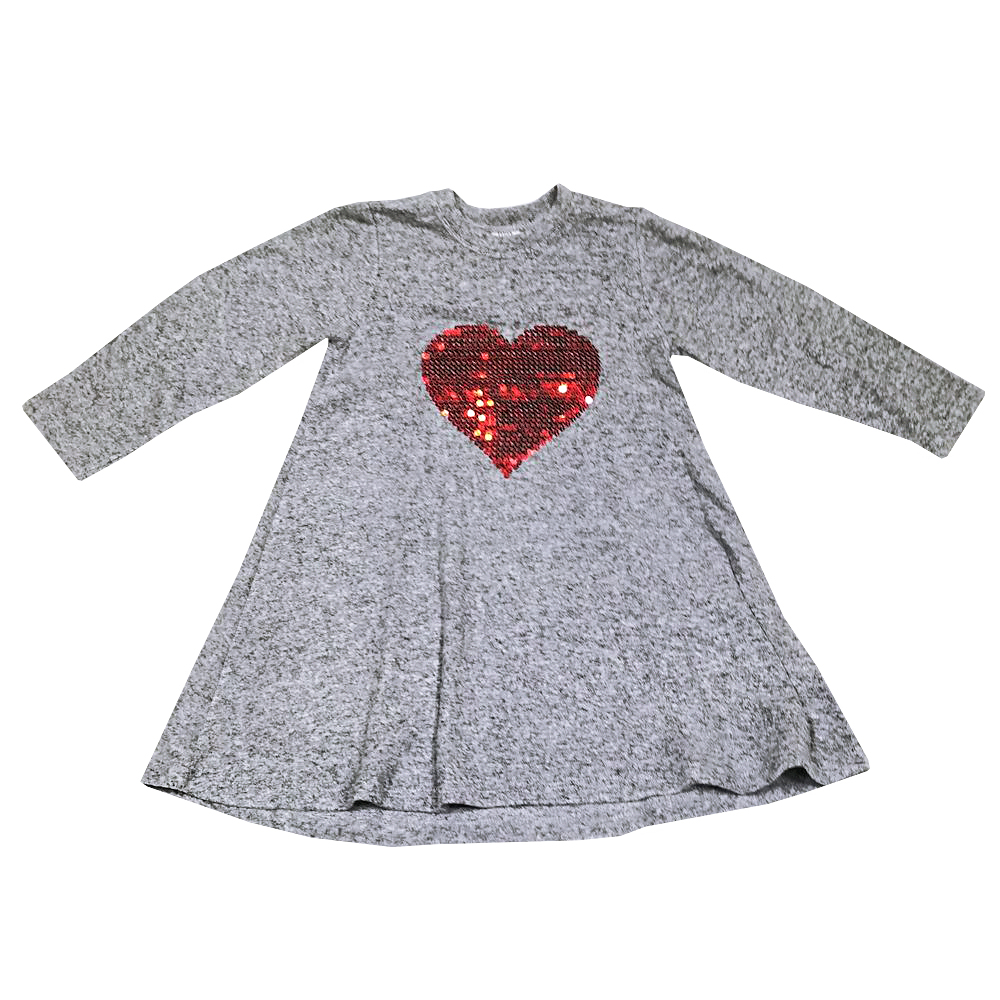 Стильное и комфортное платье из мягкого трикотажа с начесом с лицевой стороны. Силуэт трапеция. Платье украшено вышивкой из пайеток "сердце". Горловина обработана трикотажной манжетой из ткани основного изделия.