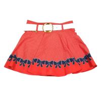 Юбка для девочки из иск.шелка в мелкий горошек и рисунком-кантом "бантики", на подкладе из фатина и иск.шелка. Крой "солнце". В талии на пояске, со шлевками и регулируемым ремешком из иск.кожи с золотистой пряжкой. Застежка молния с левой стороны. На поясе декоративное украшение " надпись с цепочкой".Размер 122: длина 33 см, обхват талии 60 см.