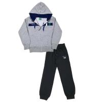 Костюм спортивный для мальчика. Мастерка на манжете. Капюшон со шнуровкой, на подкладе из хлопка. Рукав на манжете. Два боковых прорезных кармана с манжетами. На груди вставка с надписью-трансфером и рисунком. Штаны на манжетах, на резинке в поясе. Два прорезных кармана. Возле кармана надпись-трансфер.Размер 116 Мастерка: длина 46 см, обхват груди 74 см, длина рукава 46 см. Штаны: длина 74 см, обхват талии 52-58 см.