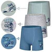 Трусики-боксеры для мальчиков, из эластичного х/б трикотажа с рисунками "мотоцикл". В поясе на закрытой резинке.ВНИМАНИЕ! Товар продается по 3 шт. одного размера. Расцветка может прийти любая, из представленных на фото (цвета могут дублироваться).