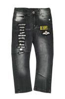Брючки для мальчика из хлопка. Классический крой. 5 карманов, шлевки. Застежка на молнию и пуговицу. Украшены нашивкой с надпись. Стильный повседневный вариант!Рост 104 см, длина- 52 см, обхват талии- 56 см.