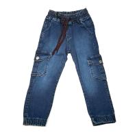 Джинсы для мальчика со штанинами на резинках, сзади на кокетке. В поясе на закрытой резинке, со шнурком и шлевками для ремешка. Декоративная строчка, имитирующая ширинку. Два боковых прорезных кармана спереди. Сзади два накладных кармана.Размер 98: длина 57 см, обхват талии 46-52 см.