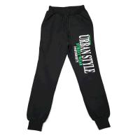 Штаны для мальчика, на манжетах, на манжете с резинкой и шнурком в поясе. Два боковых прорезных кармана. На одной штанине крупные надписи.Размер 128: длина 83 см, обхват талии 52-58 см.