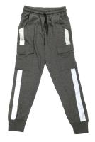 Трикотажные брюки на манжетах для мальчика. Пояс с эластичной резинкой и завязкой. По бокам лампасы. Накладные карманы.Рост 128 см, длина- 81 см, обхват талии- 66 см.